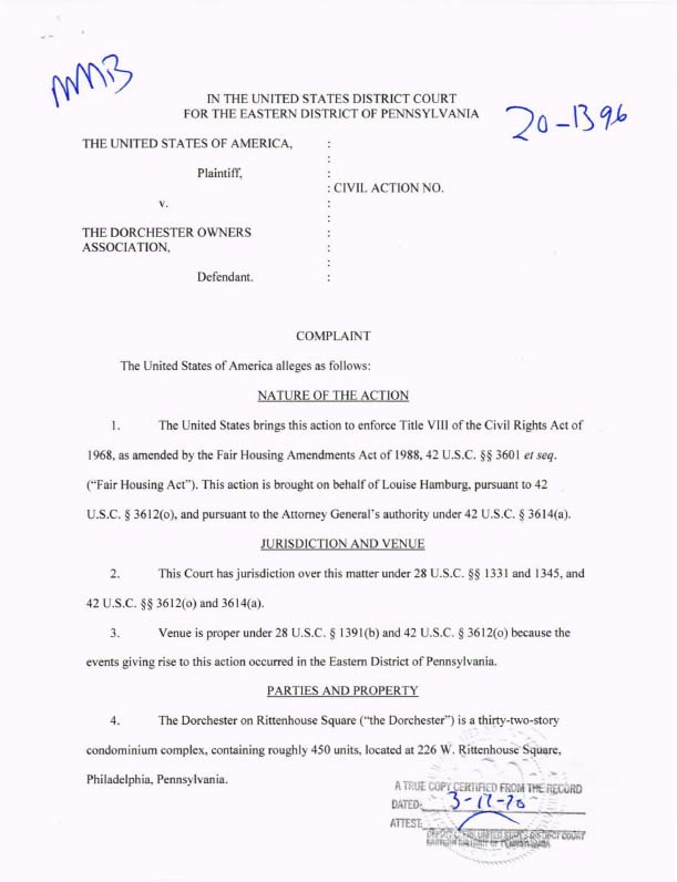 Included also was a copy of a News Release from the U.S. Dept. of Justice dated 03/12/2020, which announced that the DOJ had just filed a federal fair housing lawsuit alleging violations of the Fair Housing Act based upon some of the same issues that MVFHC and Carillon were discussing. [Note: Mr. Dane did not provide a copy of the DOJ Complaint, but Mr. Humes certainly could have accessed it. I am providing it here for background information.] See Department of Justice news release (3/12/2020) and United States v Dorchester Owners Association complaint (3/12/2020).
